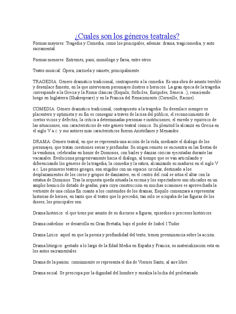 Cuales Son Los Generos Teatrales Pdf Teatro Tragedia