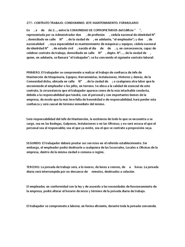 Contrato Trabajo Condominio Jefe Mantenimiento Formulario Pdf Salario Gobierno