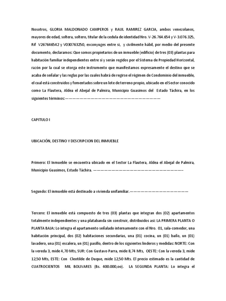 Formato Provision detallado ver. Se redacta por escritura pública a los fines de una división jurídica tanto sea de un edificio un condominio o un country. Documento Microsoft Word 1299 KB.