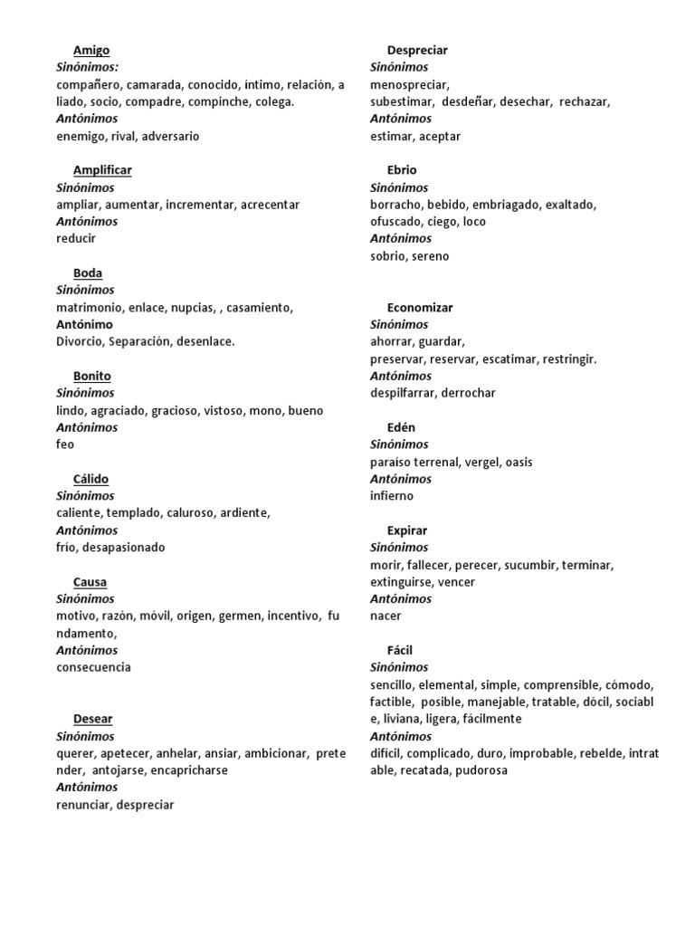 Ejemplos De Sinonimos Y Antonimos Pdf Sustantivo Diccionario