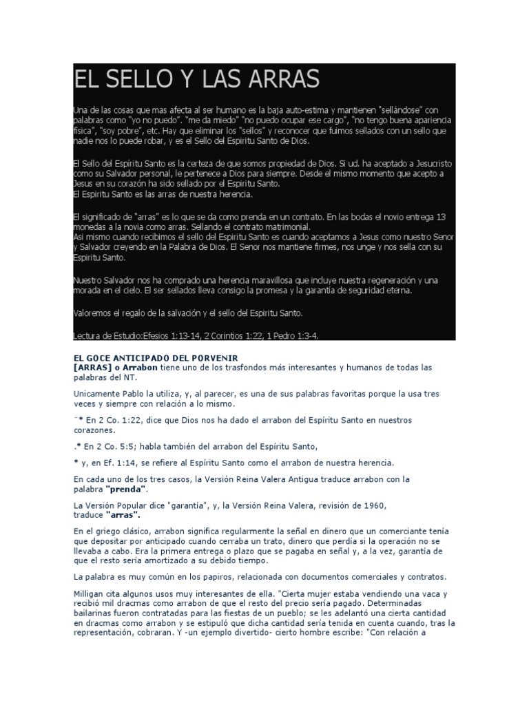 Significado De Arras Del Espiritu En La Biblia
