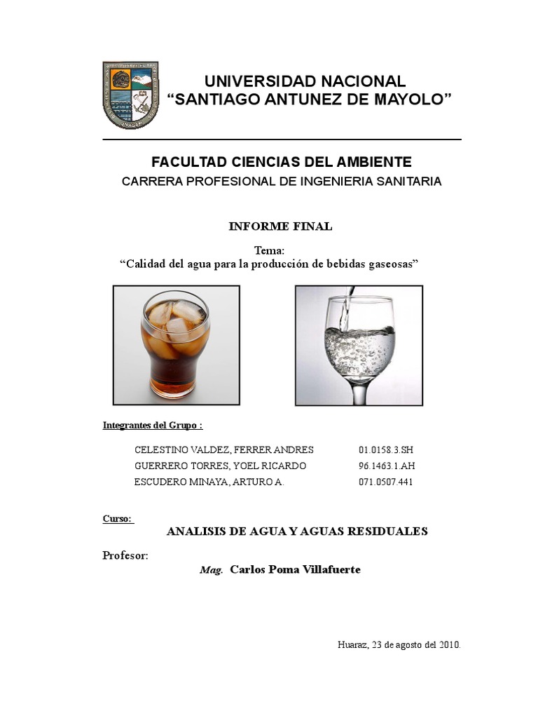 Informe Final Agua Carbonatada Pdf Osmosis Dioxido De Carbono