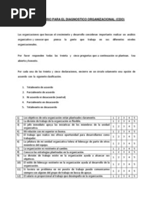 Cuestionario Para El Diagnostico Organizacional Pdf Comportamiento Organizacional Grupo De Trabajo