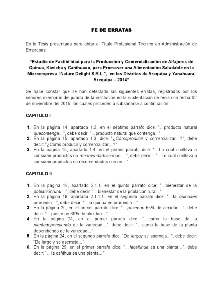 Desa rrollo de energÍa s renov a b les y b i oenergÉticos de segunda genera ciÓn. A continuación usted puede ver un ejemplo de para corregir erratas en formato PDF más abajo encontrará la opción para realizar la descarga en formato DOC editable con Microsoft Word Open Office Google Docs o cualquier otro editor de texto. Fe de erratas se refiere a la lista de erratas observadas en un libro inserta en él al final o al comienzo con la enmienda que de cada una debe hacerse mientras que fe de errores alude a aquellas informaciones erróneas que aparecen en el contenido de los periódicos y suelen aparecer en la sección de Cartas al.
