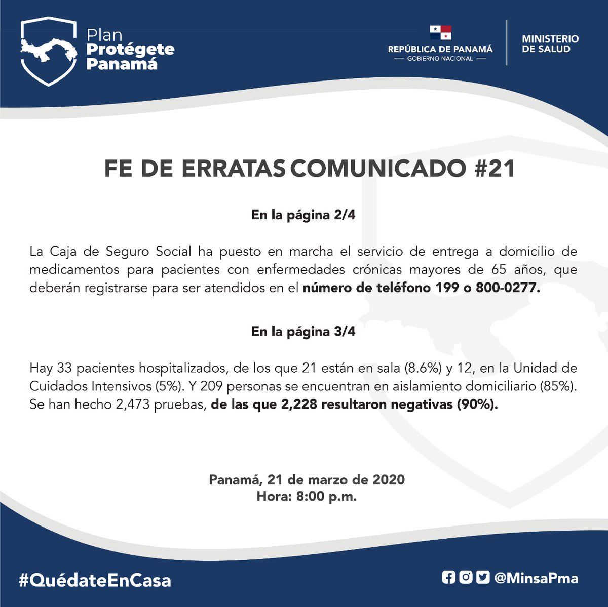 Ministerio De Salud De Panama U Tvitteri Fe De Erratas Comunicado N 21