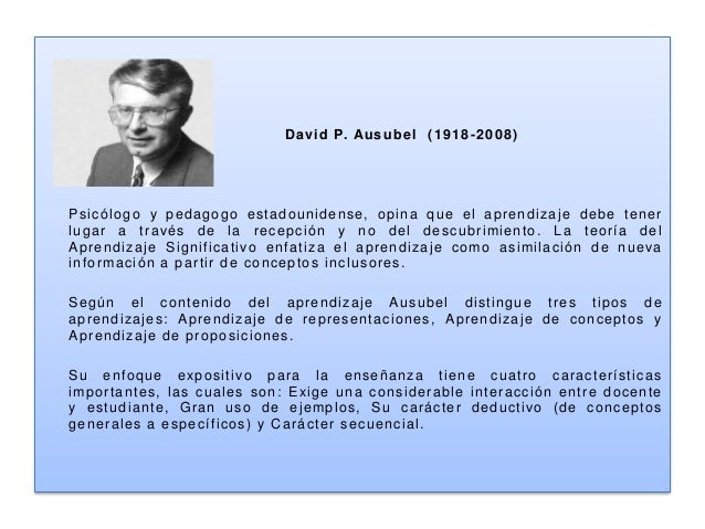 La actividad constructiva del alumno aparece de este modo como un elemento mediador de gran importancia entre la conducta del profesor y los resultados del aprendizaje Coll Palacios y Marchesi 1992. Conceptos más inclusores que el alumno ya conocía. Ausubel concibe los conocimientos previos del alumno en términos de.