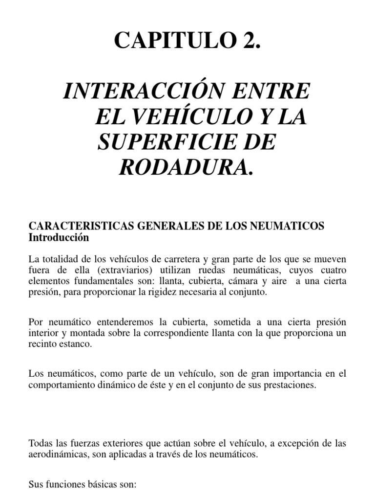 Interacion Entre El Vehiculo Y La Rodadura Capitulo 2 Pdf Neumatico Rotacion